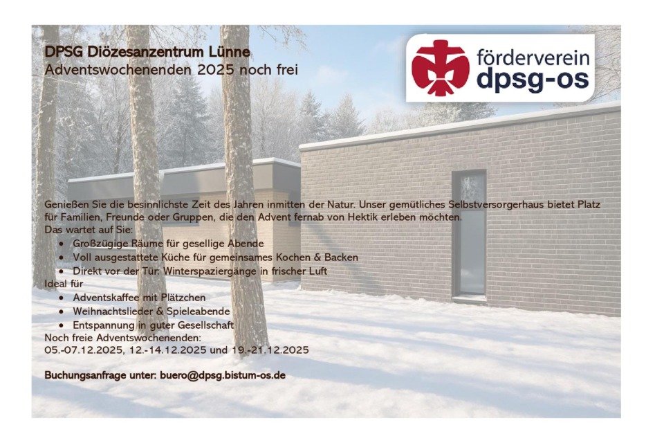 Liebe Freundinnen und Freunde, es ist so weit: Die umfassende Sanierung und Erweiterung unseres Diözesanzentrums der Deutschen Pfadfinderschaft Sankt Georg […]